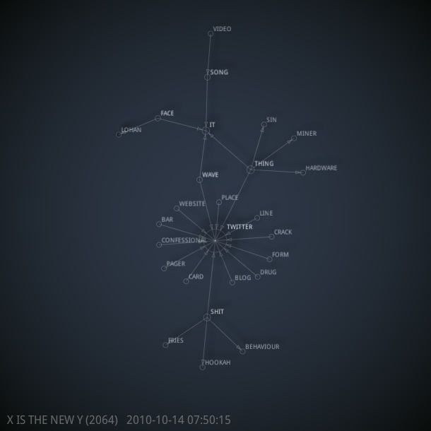 Video of final output where they extracted all tweets in the form “… ” is the new “…” and visualized it using openGL. The result is awesome. Check out the video.